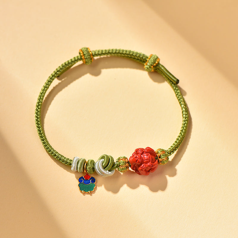 Style: Adjustable pull-cord design Size: Fits wrists up to 24cm (approximately 9.45 inches) Technique: 100% handcrafted using traditional Chinese knotting techniques Material: High-strength nylon cord, hand-dyed woven threads, cinnabar goat carving, enamel zodiac charm Color Palette: Leaf Green × Ivory White × Cinnabar Red Adjustability: Smooth and flexible pull-string mechanism